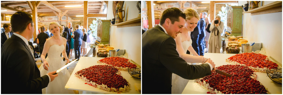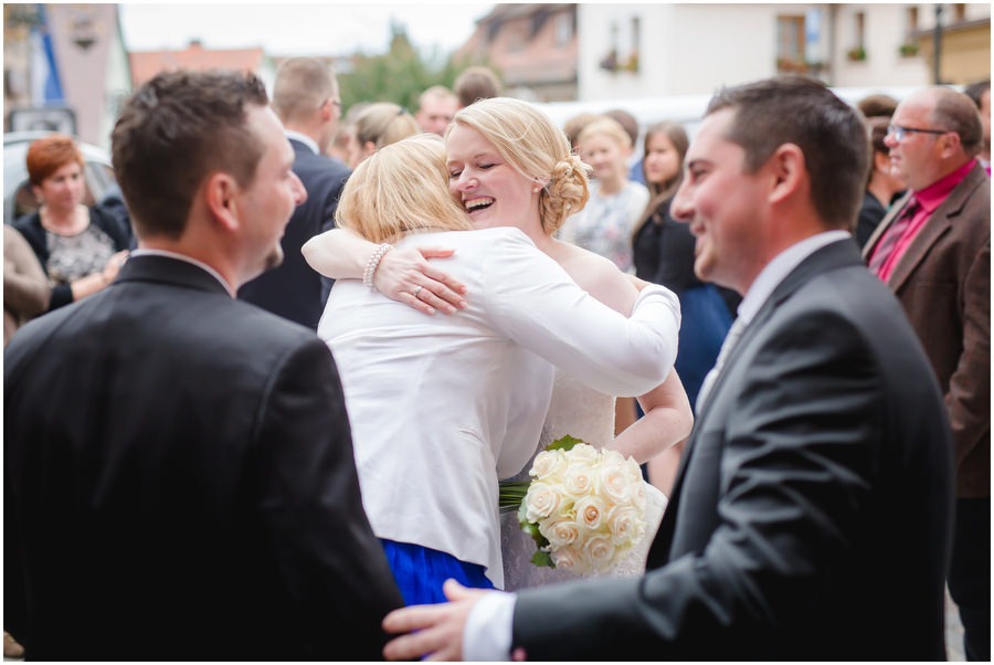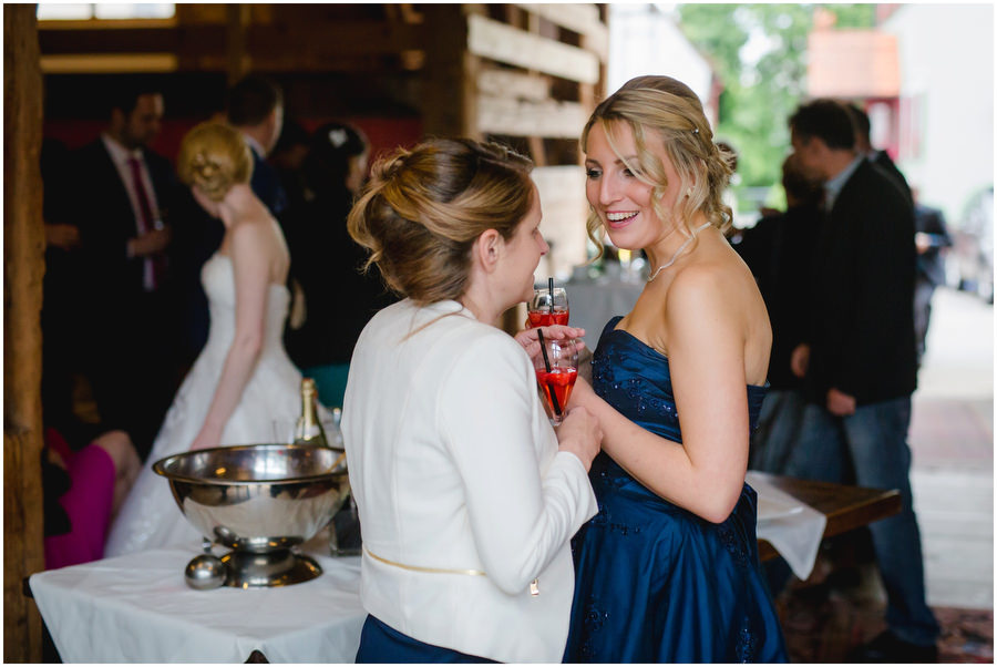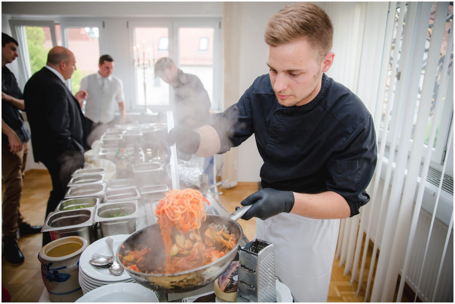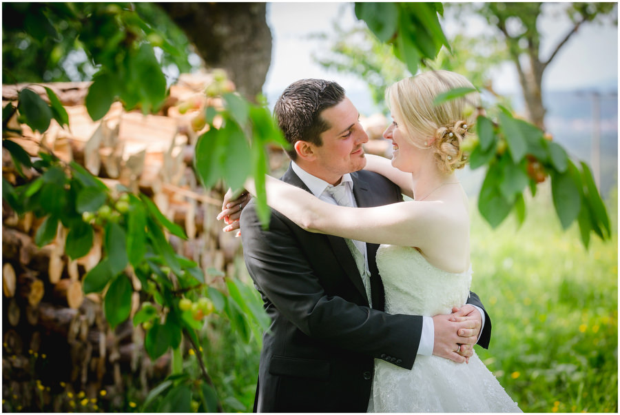 Wenn man im Juni heiratet, plant man eigentlich mit schönem Wetter bei angenehmen Temperaturen. Ganz anders kam es jedoch an der Hochzeit von Carmen und Felix. Der Tag begann regnerisch, sodass wir das geplante Shooting vor der kirchlichen Trauung spontan etwas nach hinten verschieben mussten. Zum Glück hörte es dann auch endlich zu regenen auf, sodass wir trockenes, wenn auch kaltes Wetter zum Shooting hatten. Viele Gäste und Freunde begleiteten das Brautpaar durch die anschließende kirchliche Trauung und fuhren anschließend zur Feier nach Kalchreuth zum roten Ochsen. In der Scheune warteten Leckereien und das Kuchenbuffet auf die Hochzeitsgesellschaft. Gegen Nachmittag lockerte das Wetter immer mehr auf und es kam sogar kurz die Sonne zum Vorschein, sodass wir noch eine kleine Portraitsession unter den Kirschbäumen einlegen konnten. Anschließend lud das Brautpaar in den Hochzeitssaal, wo sich die Gäste auf eine kulinarische Reise an den Kochstationen begeben konnten, wo das Essen frisch und vor den Augen der Gäste zubereitet wurde. Zu späterer Stunde wurde dann ausgelassen auf der Tanzfläche gefeiert.