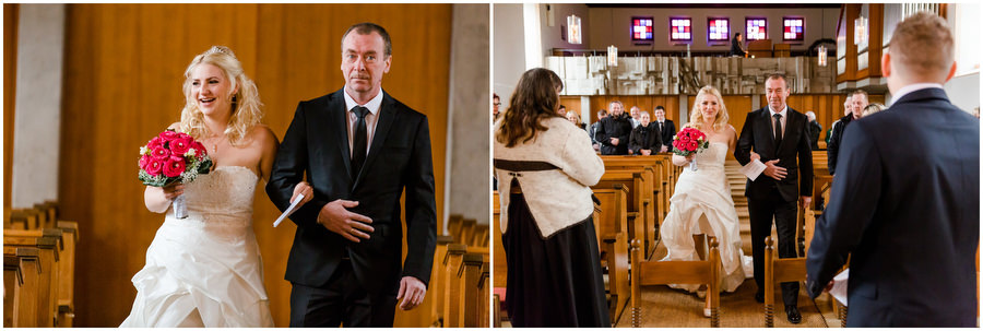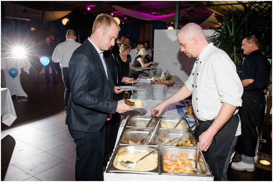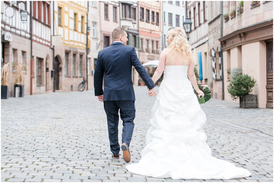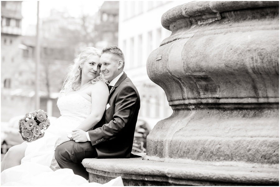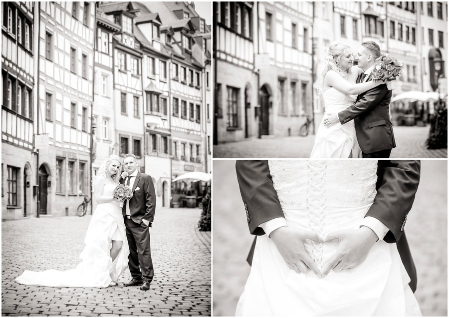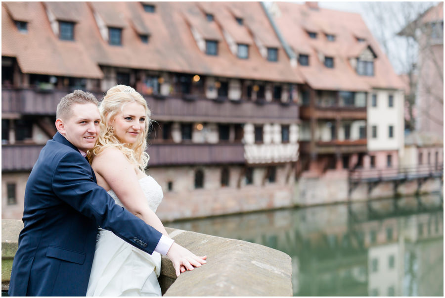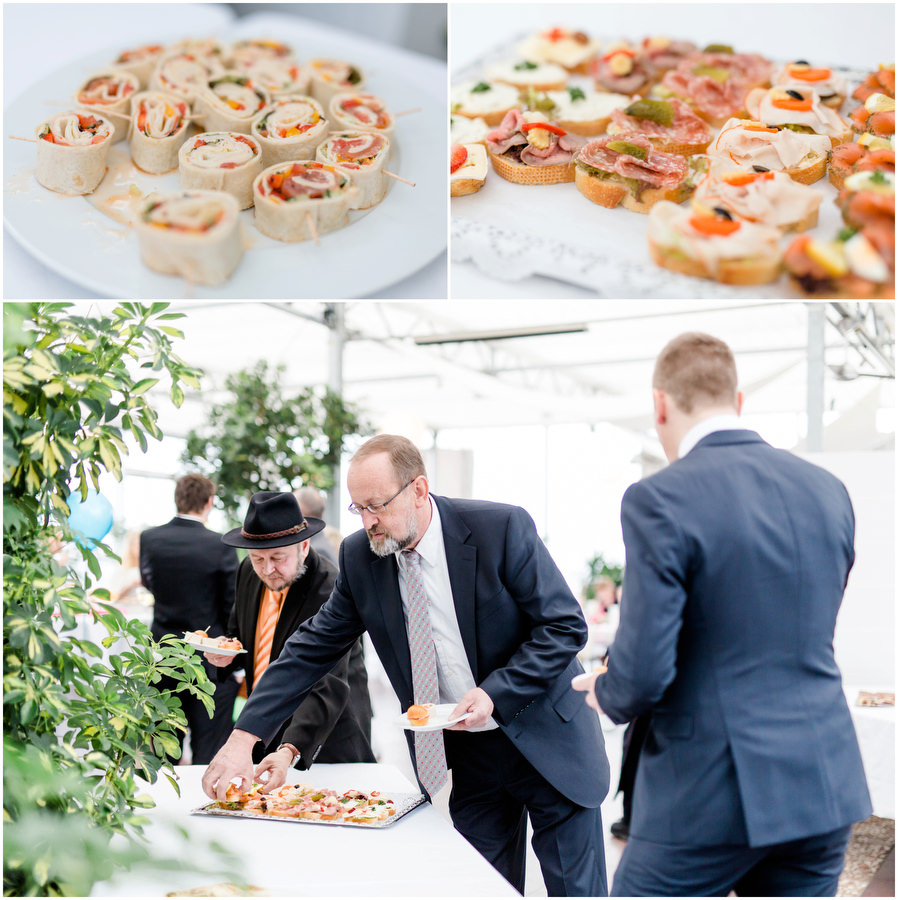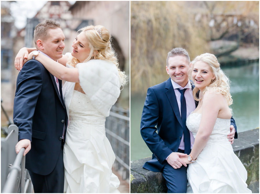 Wenn man im Juni heiratet, plant man eigentlich mit schönem Wetter bei angenehmen Temperaturen. Ganz anders kam es jedoch an der Hochzeit von Carmen und Felix. Der Tag begann regnerisch, sodass wir das geplante Shooting vor der kirchlichen Trauung spontan etwas nach hinten verschieben mussten. Zum Glück hörte es dann auch endlich zu regenen auf, sodass wir trockenes, wenn auch kaltes Wetter zum Shooting hatten. Viele Gäste und Freunde begleiteten das Brautpaar durch die anschließende kirchliche Trauung und fuhren anschließend zur Feier nach Kalchreuth zum roten Ochsen. In der Scheune warteten Leckereien und das Kuchenbuffet auf die Hochzeitsgesellschaft. Gegen Nachmittag lockerte das Wetter immer mehr auf und es kam sogar kurz die Sonne zum Vorschein, sodass wir noch eine kleine Portraitsession unter den Kirschbäumen einlegen konnten. Anschließend lud das Brautpaar in den Hochzeitssaal, wo sich die Gäste auf eine kulinarische Reise an den Kochstationen begeben konnten, wo das Essen frisch und vor den Augen der Gäste zubereitet wurde. Zu späterer Stunde wurde dann ausgelassen auf der Tanzfläche gefeiert.