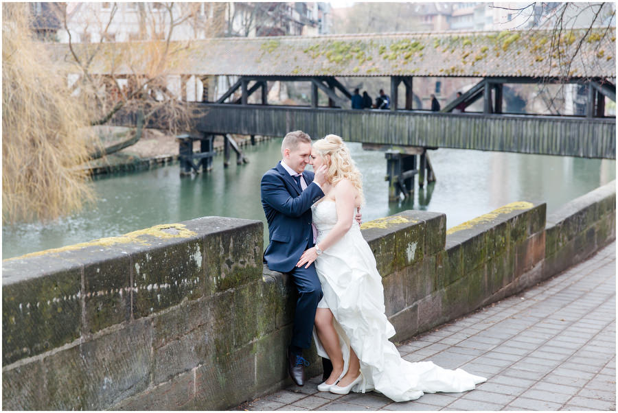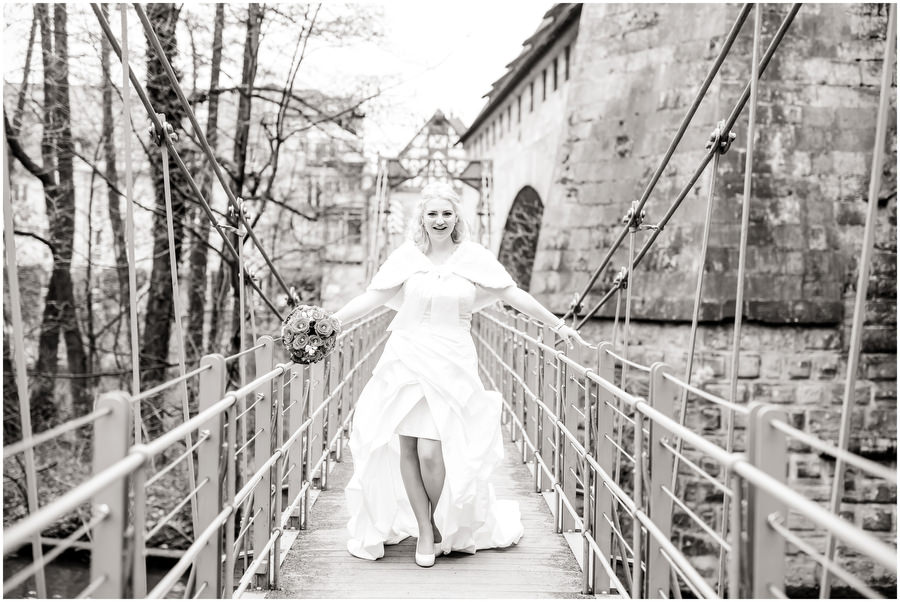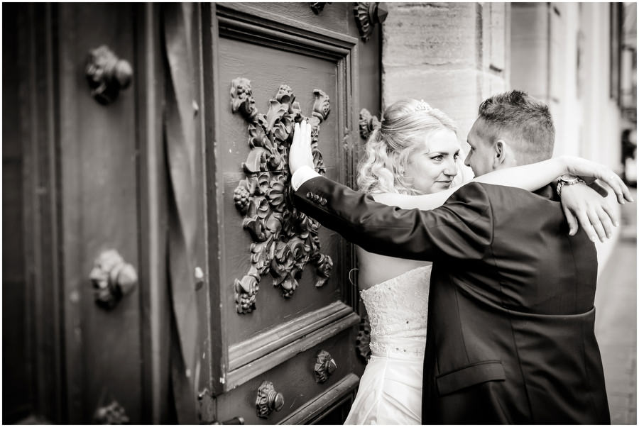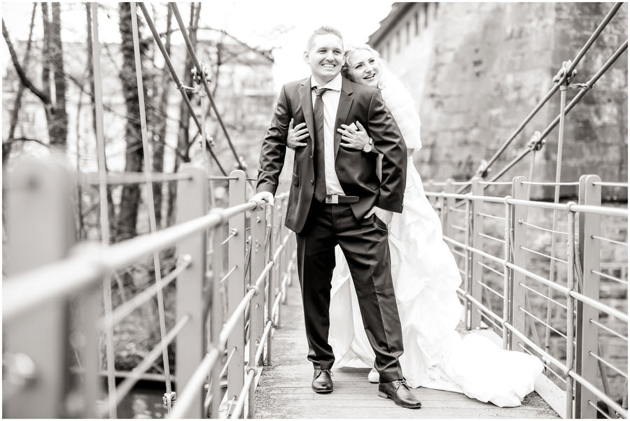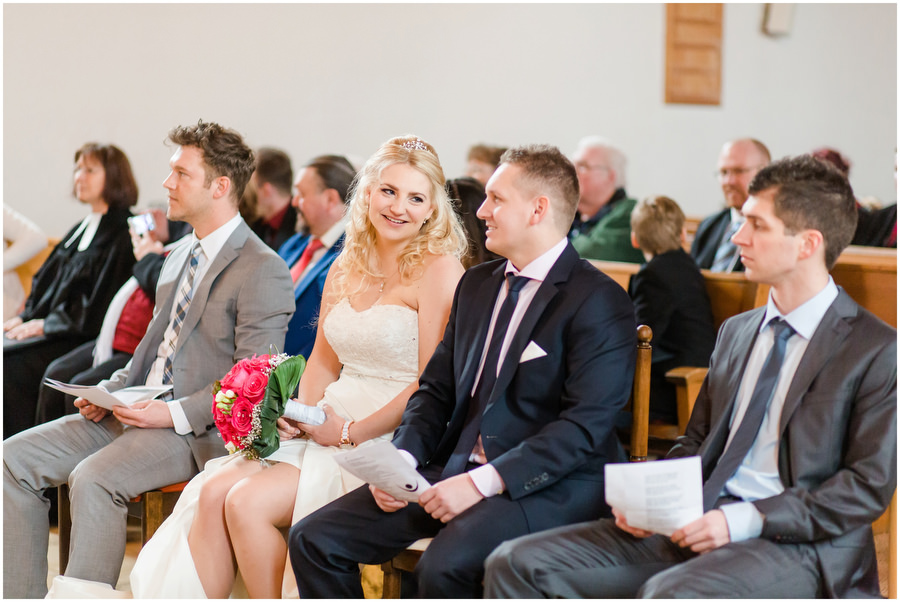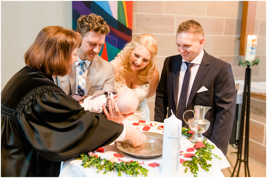 Auf dem Hotelzimmer im Schloss Wiesenthau war der letzte Feinschliff gemacht. Die Braut konnte auf ihren Bräutigam treffen. Den Firstlook, also den Moment wo sich Braut und Bräutigam zum ersten mal sehen, war ein sehr emotionaler Augenblick für beide. In einer nahegelegenen Kirschbaumwiese, die zu der Zeit ein einziges Blütenmeer war, fotografierten wir die Brautpaarportraits. Das Frühjahr ist einfach wunderschön zum Heiraten. Im Anschluss fand die Trauung in der Kirche direkt neben dem Schloss Wiesenthau statt. Die Gratulationen nahm das Brautpaar vor der wunderschönen Schlosskulisse entgegen, ehe der Festsaal mit Kaffee und Kuchen eröffnet wurde und der Tag auf der Tanzfläche seinen Ausklang fand.