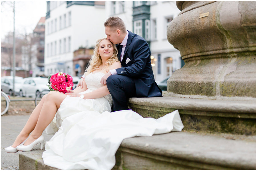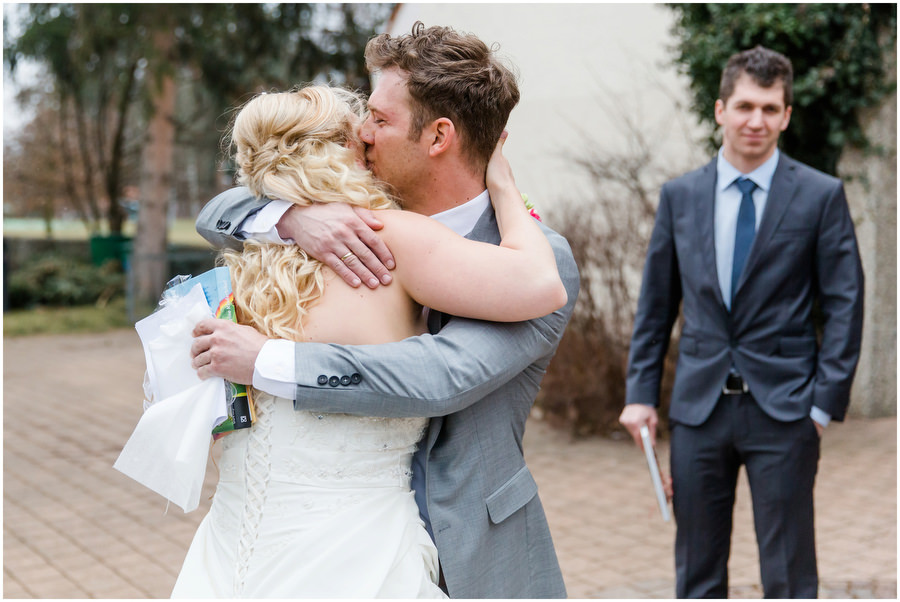 Die Taufe vom Sohnemann war Anlass für die Hochzeit von Andrea und Sascha. Das die Taufe in den Winter rein fiel, störte die beiden überhaupt nicht. Auch beim Portraitshooting, wo es nur wenige Grad über Null hatte, machten sich die beiden einfach warme Gedanken und kuschelten sich zusammen. Im Gwächshaus bollerte bereits der Holzofen auf vollen Touren und zauberte eine mollige Wärme. Im Licht durchfluteten Gwächshaus hatte man auch überhaupt nicht das Gefühl in der dunklen Jahreszeit zu feiern.